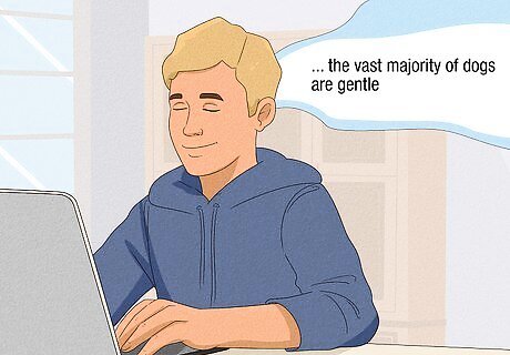 Try gradual exposure. After you have confronted your false beliefs, begin to expose yourself to the fear. Oftentimes we're afraid of something because we haven't been exposed to it very much. "Fear of the unknown" is a commonly used phrase to describe the automatic aversion people feel to something that's different. If you're afraid of dogs, start by looking at a badly drawn doodle of a dog done in silly colors. Look at it until you feel no fear response. Then, look at a photo of a dog, then a video of a dog. Examine it until no fear response exists. Go to a park where you know one or a few dogs will be on-leash and watch them until you feel no fear. Go to a friend’s house who has a dog and watch him interact with a dog until no fear response is elicited. Ask a friend to let you touch or pet his dog while the dog is restrained by your friend until you feel neutral. Finally, be near a dog and spend one-on-one time with a dog.