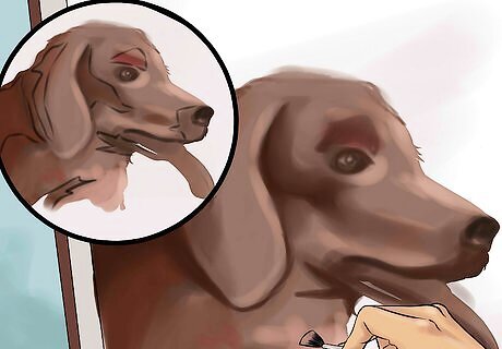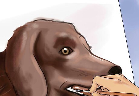 Add detail to the nose and mouth. As with the rest of the body, the tongue and nose can be broken down into larger planes to plan out the form. Once you have them looking as if light is shining on them, go in with even finer details. To make the snout look wet, look at your reference for the placement of small, bright, hard highlights. These are called “specular reflections”. They occur where the light source is being completely reflected off the surface.