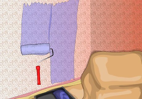 Cover the wall in overlapping vertical strokes. If this doesn't do an adequate job, roll the paint on in a "V" pattern, then follow up with vertical strokes. Because of the amount of paint that the roller will hold and the increased possibility of splatter, use the roller more slowly than if you were painting a smooth wall.
