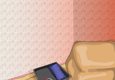 Prepare the room for painting as you normally would. Cover the floors and furniture, fill any small holes, remove outlet covers, tape off the trim and cut in the corners with a brush.