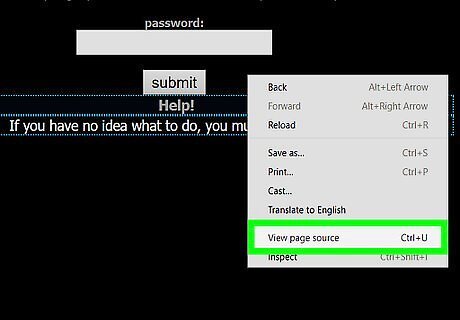 Wait for the screen to ask for a password. To find it, right click and click View Page Source.