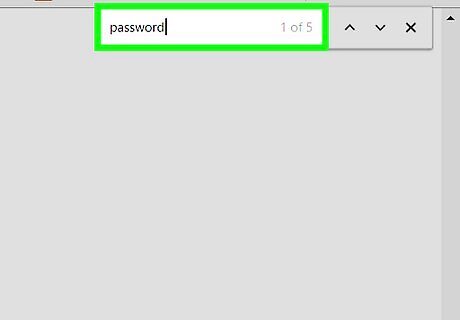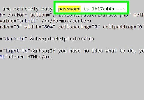 Type in the word password. There should be highlighted words. Look for the one that says password: (the actual password)