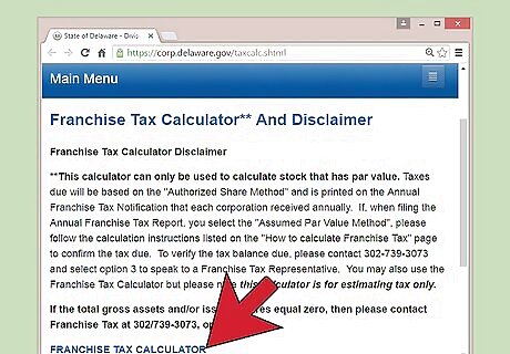 Use the Division of Corporations' tax calculator to assist you. If your tax has par value, you can use the Division of Corporations' franchise tax calculator to assist you. The calculator is available online at https://corp.delaware.gov/taxcalc.shtml