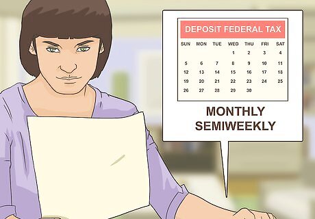 Find out when you must deposit your federal taxes. The IRS has 2 schedules for depositing withheld income, Social Security, and Medicare taxes: monthly and semiweekly. You’ll determine your deposit schedule based on your total tax liability. Look back to the previous year, which begins on July 1st and ends on June 30th (e.g., July 1, 2017 to June 30, 2018). For most people, you will file monthly if you reported $50,000 or less in taxes. If you reported more than $50,000, then you’ll deposit semiweekly.