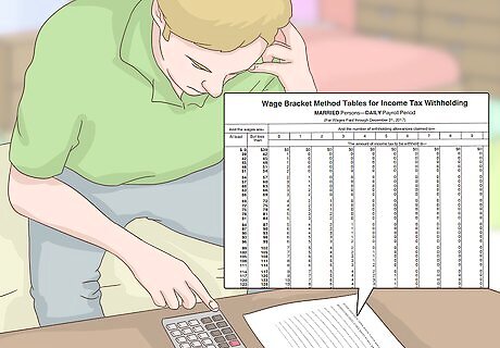 Calculate federal income taxes. You must withhold and then deposit federal income taxes from your employees' paychecks. Accordingly, you must calculate how much to withhold, which will depend on how much they make. Refer to IRS Publication 15, Employer's Tax Guide, for more information. As an example, imagine you have one employee who you pay $500 a week. One easy way to calculate the amount of withholding is to use the wage bracket tables on pages 48-67 of Publication 15. Take out the employee’s W-4, which you should have on file. This form should list the number of claimed allowances and whether the employee is single or married. On the wage bracket table, a single person making $500 a week with 2 allowances must have $28 withheld. There are wage bracket tables for daily, weekly, biweekly, and monthly pay periods.
