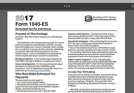Estimate your tax. Use Form 1040-ES to calculate your estimated tax. You can download it from the IRS website. You should take out your prior year’s tax return, which contains helpful information. Follow the directions on Form 1040-ES. Generally, you must estimate your adjusted gross income for the current year, using your income from the previous year. Remember to take the self-employment tax deduction. A worksheet is provided to calculate this amount.