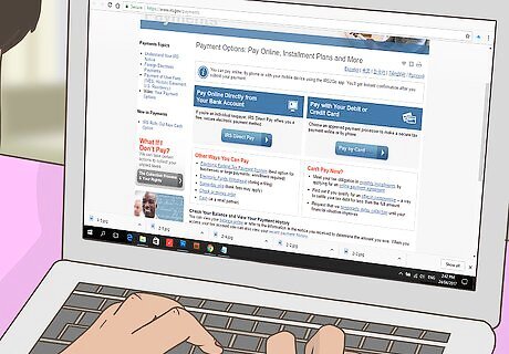 Pay online for convenience. The IRS provides many different online payment methods. For example, you can pay with a debit or credit card (though a convenience fee applies). Alternately, you can pay by electronic transfer directly from your checking or savings account. If you don’t have all the money, you can fill out an online payment agreement at https://www.irs.gov/payments.