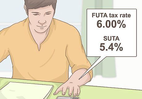 Calculate your unemployment tax. As an employer, you pay this tax from your own funds. You don’t withhold anything from your employees. You will pay 2 unemployment taxes—Federal Unemployment Tax (FUTA) and State Unemployment Tax (SUTA). In 2019, the FUTA tax rate is 6.00%. It applies to the first $7,000 of wages for each employee each year. Also calculate your SUTA, which you can claim as a credit against your FUTA up to 5.4%. Contact your state’s Department of Labor to figure out how to calculate your SUTA.