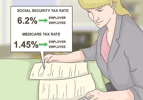 Estimate the amount of Social Security and Medicare taxes. You need to withhold and deposit taxes for both Social Security and Medicare, which are collectively called “FICA” taxes. You also need to contribute a matching portion yourself as the employer. As of 2019, the Social Security tax rate is 6.2% for both the employer and employee. This tax is applied only to the first $132,900 of wages. For example, if your employee makes $500 a week, withhold 6.2% or $31 from their pay as the employee portion of the tax. As the employer, you must match this amount and pay $31 so that the total Social Security tax paid to the IRS for this employee is $62 per week. As of 2019, the Medicare tax rate is 1.45% for both the employee and employer. So, if your employee's paycheck is $500, withhold 1.45% or $7.25 for the employee portion of Medicare tax. As the employer, you pay an additional $7.25 so that the total amount submitted to the IRS for this employee for Medicare tax would be $14.50 per week. There is also an additional Medicare tax of 0.9% for high earners with an income in excess of $200,000 for those who are single or $250,000 for those who are married filing jointly. This additional Medicare tax is only required to be paid by the employee and is withheld from the employee's wages but there is no corresponding employer portion to be paid.