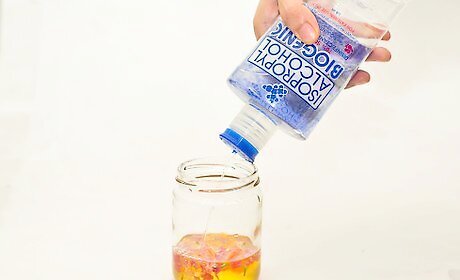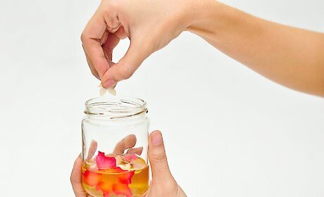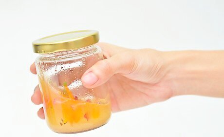 Add the flowers to the jar and leave them alone for 24 hours. After 24 hours have passed, remove the flowers. Squeeze the flowers over the jar to allow all of the liquid to fall back into the oil.