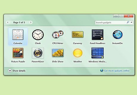 Get gadgets. You can get the basic free ones that come with Windows (if you have Vista or 7) such as the clock, calendar, mini slideshow, picture game, weather etc. If you want more you can go online (the option will be on there). To get these you right click on your desktop picture>gadgets.