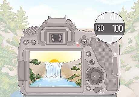 Lower your ISO setting as low as it goes. Your ISO setting is your camera sensor’s ability to capture light as it passes through the aperture and shutter openings. Low ISO settings usually equate to a higher quality photo when it comes to shooting waterfalls. ISO settings on digital cameras today commonly go as low as 100.