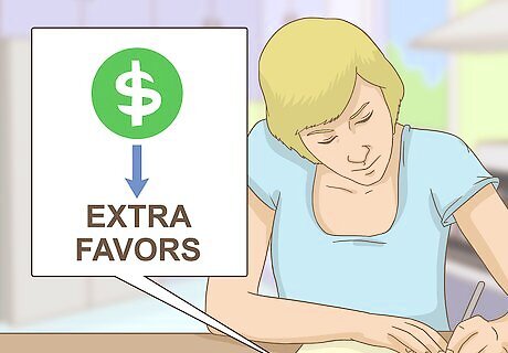 Budget for extra favors. Add a few extra favors in case some unexpected guests come. Other guests may love your favors so much that they take two. If you are giving favors that have breakable pieces, recognize that some of these may break in transport, too.