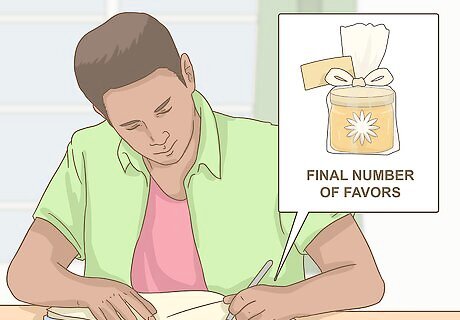 Calculate final numbers of favors. Before you order or make your favors, review your RSVP list. This can help you figure out if you need to adjust your original calculations. Make sure to add a few extra “just-in-case” favors to your final total. Calculate 10 extra favors per 100 guests.