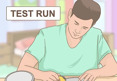 Do a favor test run. One you've figured out what favor you would like to make, assemble one or two of your intended favors. This gives you an idea of how long it takes to assemble them and how easy it is. A test run can also help you figure out what changes you may need to make to your planned favor to keep it within your budget. Talk to your fiancé(e) about the favors to make sure you both like the assembled product.