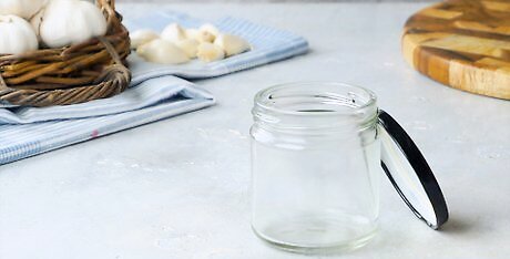 Prepare the jars for pickling. Before you start, you want to make sure that you don't introduce bacteria into your canning jars. The slightest bit of contamination can ruin a perfectly good batch of garlic, so make sure they're sterilized properly beforehand. After sterilized, put them on a freshly cleaned towel on the kitchen counter to air-dry. Perhaps the easiest way to do this is to wash the jars and lids in the dishwasher on the "sterilize" cycle. If you do not have a dishwasher or a dishwasher with a sterilize function, put the jars and lids into boiling water for 10 minutes to sterilize them. When handling freshly-sterilized cans and lids, use clean tongs or canning tongs. Any interaction between human skin and the jars or lids could transfer unwanted bacteria. Try not to use old jam or jelly jars as your canning jars, as these don't preserve properly. Instead, opt for mason jars. If you want to use old jam jars, you'll need to keep your pickled garlic refrigerated at all times and use it up within three months.