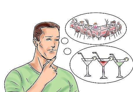 Start making appointments to view locations and meet other vendors. Discuss room rental costs and what is included in those fees. Determine what the hours are that you will have access to the room. If no one books it the night before, can you have access to get in and decorate or set up? Are they providing the service ware for the food, or do you need to bring in or rent your own linens, plates, napkins and silverware? Does the food have to come from that location, or can you bring in an outside caterer? If you can bring in your own caterer, start meeting with potential vendors to taste their food and determine their pricing. Having catered meals at your event can eliminate the hassle of trying to assemble the food and beverages on your own. Ordering take out also leaves unnecessary room for mistakes in the order or delays in delivery. Determine if your venue requires you to bring in outside security for your event. This not only protects you from liability, but this can help keep outsiders from crashing your party. Look to hire a licensed bartender if your facility cannot provide one, and you choose to have alcohol at the event. Find out if the venue can provide decorations or if you have to supply your own. Some facilities have a wide variety of items that you can use such as candles, mirrors to set on the table, glass jars, etc. So if you can take advantage of anything being provided for free, you can save quite a bit on your budget.