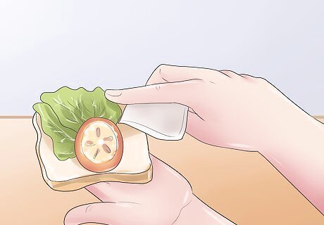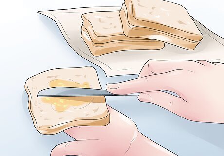 Make sandwiches. For a real tea party feel, make sandwiches out of cream cheese, cucumber, or just butter. Have an adult help you cut them into triangles or small pieces, and arrange them on a plate in a pyramid or other shapes. Use a cookie cutter on the sandwich to create sandwiches in different shapes. This works best with squishy bread that holds together well.
