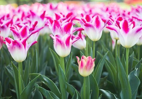 Plant flowers or sow seeds when all dangers of frost have passed. Check the seed package or plant package to determine how close to space the flowers apart in your garden.