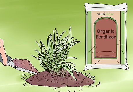 Use compost to top-dress annually. Once your grass is planted, you'll want to make sure it retains nutrients. Apply about a ⁄2 inch (1.3 cm) of compost to the soil every spring, especially in the first few years of growth. You can use compost to maintain the color and health of your mondo grass throughout the spring and summer. Be careful to not add too much compost. Add no more than 1 inch (2.5 cm) per spring/summer after the first year, especially if you're using manure-based compost. It is higher in phosphorus than plant-based compost, and can be harmful to your plant in excess.