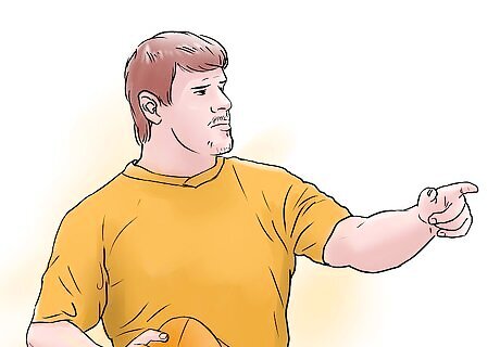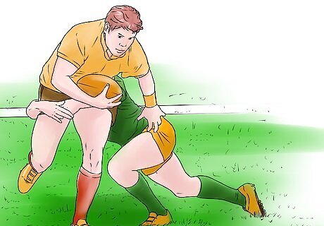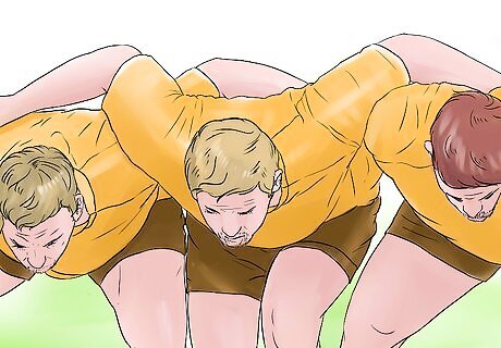 Stay in place if the other team has the ball. If the other team has the ball you will stay in the same area as before, but this time facing side ways towards the other team. So on your outside you have the Opposite Hooker/thrower and on your inside you will have the line-out. When the play is called, you want to read it. If you can learn their calls throughout the game, and give calls/codes of your own, you might very well be able to counter the enemy's move, but if you fail, it might not go down too well. When the ball is thrown, you want to follow the ball on your side, and as soon as it is caught/given to the scrum-half you want to rush into him and tackle him.