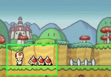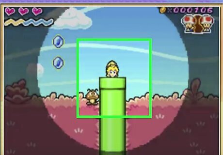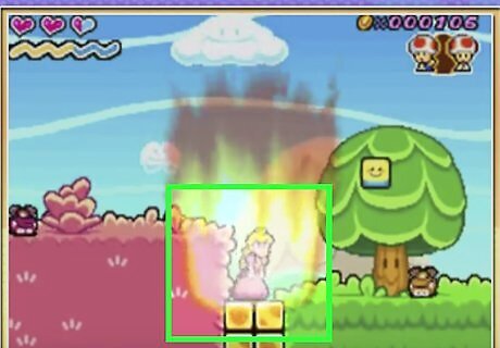 Find the hidden Toads. There are three Toads hidden in each stage. When Peach enters an area an exclamation point might appear on the touch screen. Free them from the boxes they are in by using your attacks! .