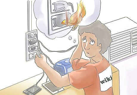 Check your electrical appliances, cords and outlets. Ensure the electrical appliances in good condition, without loose or frayed cords or plugs. Avoid overloading plugs and check light fixtures in your home and use bulbs that are the correct wattage. Check that your home contains GFCIs (ground fault circuit interrupters) or AFCI's (Arc fault circuit interrupters), which prevent electrical shock and fire by shutting off faulty circuits. Be careful about do-it-yourself electrical projects. Studies have shown that many home fires are caused by improper installation of electrical devices. Get appliances that spark, smell unusual, or overheat fixed.