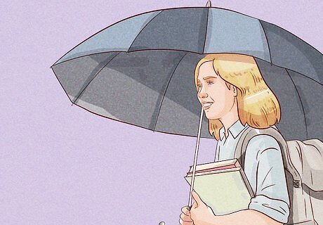 Opt for the shade whenever you’re outdoors, if possible. Try to find a shady spot if your class goes out to recess, and avoid doing lots of physical activity to help keep you cool. If you walk to or from school, look for a path that’s covered with trees to walk in the shade. You can even bring an umbrella with you to school to create your own shade while walking around.