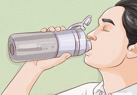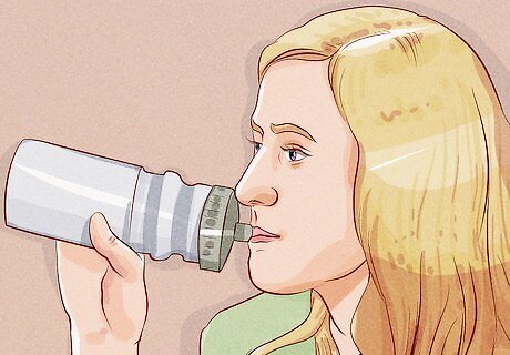 Bring a bottle of water to school and stay hydrated all day. When it’s hot outside, it’s very important to drink lots of water, even if you’re not feeling thirsty. Fill up a water bottle full of cold water and keep it with you throughout the day, taking sips regularly. If you don’t have a bottle of water, visit the water fountain often to stay hydrated. Stay away from sugary or caffeinated drinks—these can cause dehydration.