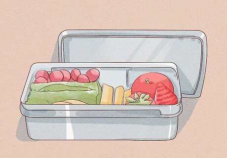 Pack a lunch full of light, cool foods in an insulated lunch box. Eating a big heavy meal is going to make you feel sick if it’s super hot outside. Try to pick out foods like salads, fruits, and vegetables to go in your lunch to help keep you cool and nourished. Place your lunch in an insulated bag so that it stays cool all day. Other lunch item ideas include chicken salad, Greek yogurt, cheese and crackers, pasta salad, hard boiled eggs, and hummus with pita bread. Pack extra water in your lunch.