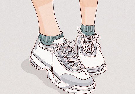 Wear breathable shoes to keep your feet cooler. If you're planning on being active, tennis shoes with cotton socks are a good shoe choice. Sandals with straps are a stylish option that will also be comfortable and efficient. Stay away from heavy boots or shoes made of fabrics that don't let air in and out. Make sure your shoes adhere to your school dress code—for example, some schools don't allow flip flops.