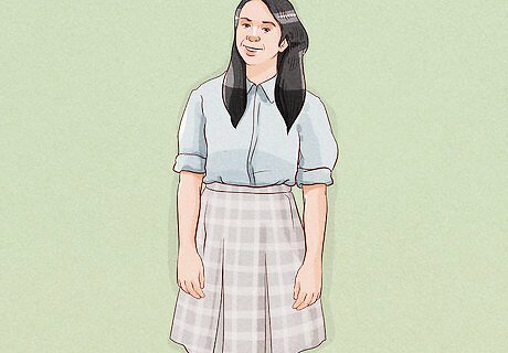 Choose light-colored clothing to wear. Light-colored clothing reflects the light, making you feel cooler. If possible, opt for clothing with a loose fit that won't cling to your body. Pick out natural fabrics, such as cotton or linen, in colors like white, yellow, or pastels. If you wear a school uniform, try to adapt your uniform to help keep you cooler. For example, roll up the sleeves of your shirt or opt for ankle socks instead of knee socks. Make sure you don't break your school dress code when trying to pick an outfit that will keep you cool—your shorts and skirts should still be the appropriate length. Check your school handbook to find out any rules about what kinds of shirts you can and can't wear.