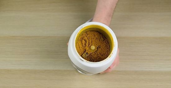 Pass the powder through a fine mesh sieve to filter out chunks. Place a medium-sized bowl on the counter right next to the grinder. Hold a fine mesh sieve over the bowl and use your other hand to spoon the turmeric powder into sieve. Work 1 spoonful at a time until you’ve filtered all of the powder. It can help to gently shake the sieve as you work to keep the powder moving through the fine mesh.