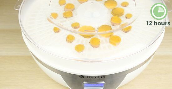 Set the temperature to 104 °F (40 °C) and dry the roots for 12 hours. Your dehydrator should have a temperature dial on it that allows you to tightly control the temperature. Set it to 104 °F (40 °C) and leave the machine alone for 12 hours. You don’t need to flip the pieces over or do anything during this time.