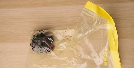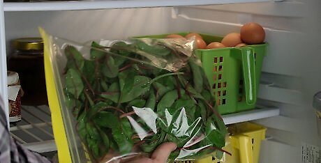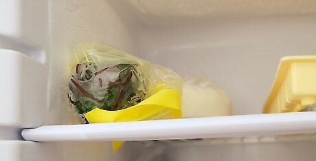 Remove any excess air from your storage bag. After placing your chard in the storage bag, wrap the bag as tightly as you can around the chard. To keep your greens fresh, remove as much excess air from the bag as you can.