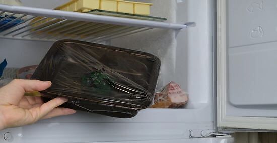 Wrap plastic wrap tightly around your pan and freeze for 1-2 hours. Pull the plastic wrap as tightly as you can around your pan. This will prevent ice crystals from forming on your damp chard. Your chard will not completely freeze during this time but will form a strong enough seal to prevent the chard balls from clumping together when you move them to a bag. The chard does not need to freeze all the way through. Make sure that if your chard is not completely frozen, it will not break its form when you place it in the bag.