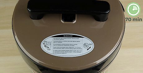 Cook your 11 lb (5,000 g) jars in the pressure canner for 70 minutes. Be extremely careful when placing your jars into the pressure cooker. Wait to insert your jars into the cooker until you have multiple jars ready. Process your .5 US qt (0.47 L) with a pressure of 10 lb (4,500 g) for 70 minutes and 1 US qt (0.95 L) for 90 minutes. Processing times will change based on altitude. If you are at an altitude over 1,000 ft (300 m), add 15 lb (6,800 g) of pressure. For 10 lb (4,500 g) you will use a weighted gauge. For anything 11 lb (5,000 g) and over you will use the dial gauge and adjust the pressure as needed for your altitude.