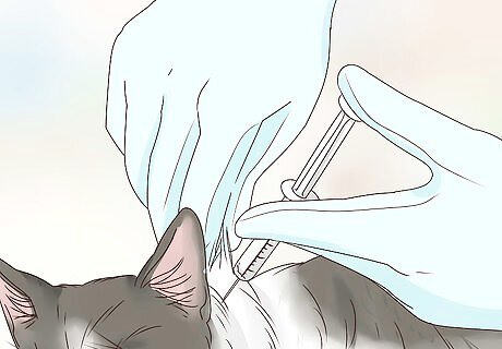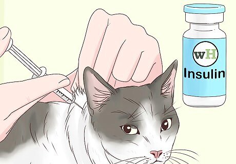 Schedule insulin shots. If you have to give your cat insulin shots as part of its diabetes treatment, make sure to administer them at the same time each day. To make this easy, give your cat the injections around already-scheduled mealtimes. Your cat might be more amenable to receiving the shot if it knows that its meal will be following right after. To avoid giving your cat too much insulin or "double-dosing," designate one family member to be in charge of administering the daily injections.