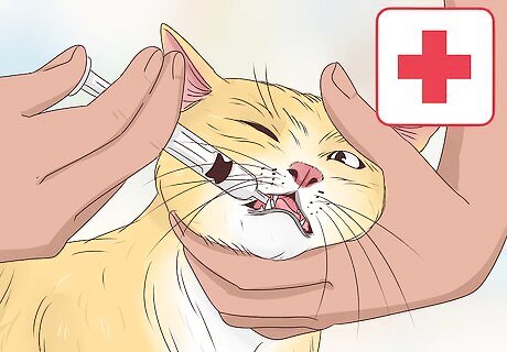 Rub syrup or honey on its gums. If your cat is unconscious, rub corn syrup or honey on its gums to try to revive it (which should occur within 1-2 minutes of the sugar being absorbed into the gums). If it wakes up, try to feed it some of its regular food and bring it to your veterinarian as soon as possible. If your cat does not wake up, or if it experiences seizures, bring it to the nearest emergency animal clinic immediately.
