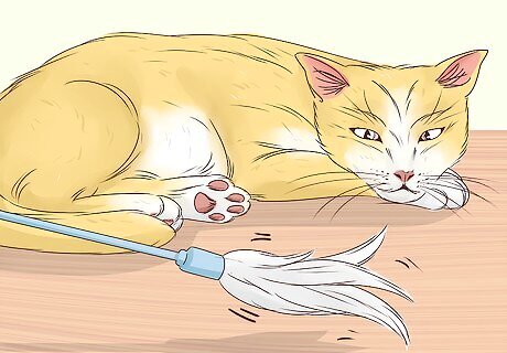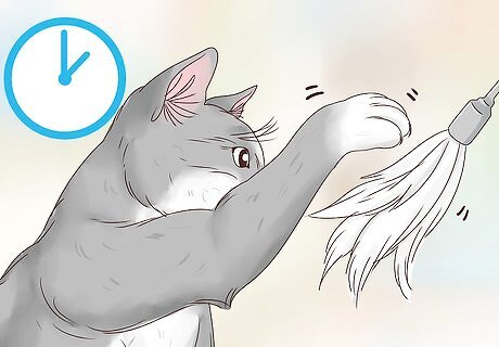 Maintain a consistent amount of exercise. Make sure that your cat maintains a regular amount of exercise by engaging it in short periods of play every day. Set aside at least 10-15 minutes for small intervals of activity (e.g., chasing or hunting games). If your cat does not show interest in playing, look online or in pet stores for new toys to get its attention.