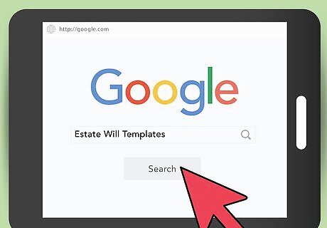Find will templates. Lawyers will swear up and down that you can’t draft your own will. Admittedly, some people shouldn’t. If your estate is very complicated or large, then you should find an estate planning lawyer. However, if your estate is fairly simple, you can use a template to guide you in the creation of your own will. You can generally find templates in the following places: Statutory forms. Your state legislature might have written a form you can use. You can find it by searching the Internet for “your state” and “statutory will.” Books. Some will books have been published with sample templates and instructions. Some books come in CD form. You can find these online. Will software. You might also be able to buy software programs which walk you through creating a will. You answer questions and the software tailors a will to your circumstances. Online programs. These programs are like software except they are online. You answer questions and a will is created.