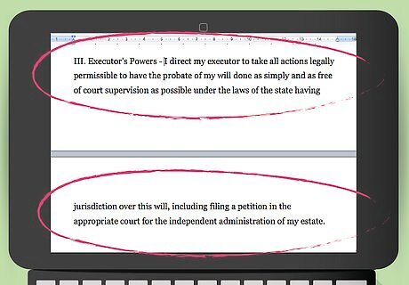 Create a self-proving affidavit. When you die, your executor will have to submit the will to probate court. The probate judge must determine if the will is valid. Usually, the judge requires that your witnesses testify in court that they recognize the will as your true last will and testament. Unfortunately, several decades might have passed between your signing the will and the will’s admission into probate. In these situations, many witnesses have died or can’t be found. You can bypass these problems by creating a self-proving affidavit. With one of these, your witnesses won’t have to testify. Some state statutes provide language to include in your self-proving affidavit. You can find your state law by searching “your state” and “probate self-proving affidavit.” Self-proving affidavits are not required; however, they can make probating the will much easier.