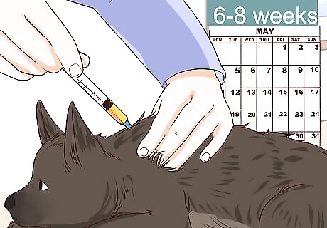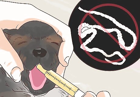 Deworm the puppies. Intestinal parasites can make puppies sick and make it harder for them to gain weight and grow into healthy adults. To prevent these parasites from causing disease, have your vet deworm your puppies at two, four, six, and eight weeks of age. Then, give your puppies a monthly preventive that protects against heartworm disease and intestinal parasites. A deworming medication kills the intestinal parasites. Give the monthly preventative year-round to give your puppies full protection from diseases caused by worms.