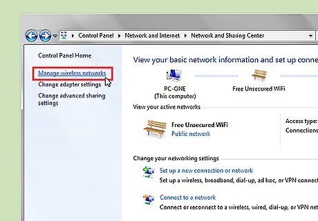 On the left pane, click on the option "Manage wireless networks."