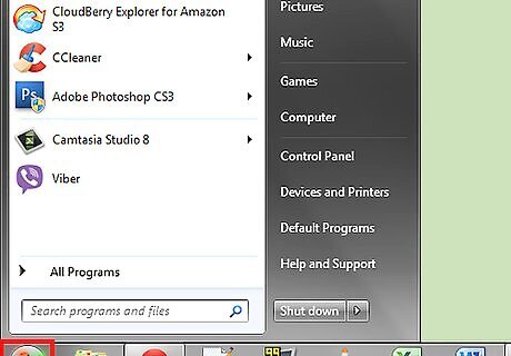 Click the "Start" button. It is in the lower left corner of the Desktop.