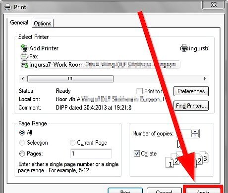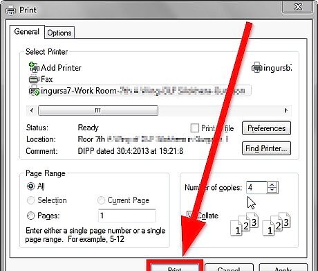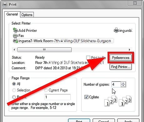 Fix the print settings for your desired print options. This includes the quantity of copies desired, page selection locations, page orientation (portrait (default) to landscape and vice versa) and selected printer.