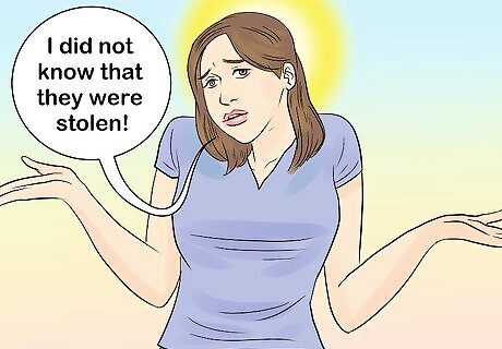 Know you are protected if you bought innocently. The law requires that you “knowingly” buy stolen goods with an intent to permanently deprive the owner of the property. If you did not know that they were stolen, then you did not break the law. However, you probably have to return the goods to the real owner. After returning the goods, you can bring a lawsuit for restitution against whoever sold you the goods.