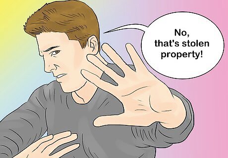 Avoid buying goods you know are stolen. If someone tells you that the goods are stolen, then you cannot purchase them. If you do, then you could be charged with receipt of stolen property, which is a crime. Also refuse to store goods if you know they are stolen. You can't store a DVD player you know your cousin stole.