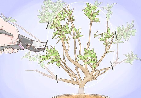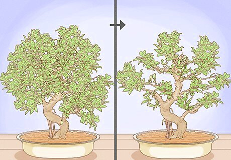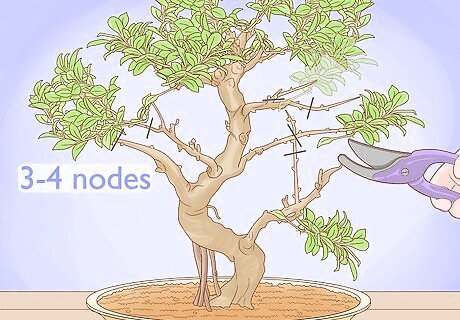 Cut back twigs so they only have 3-4 nodes. The nodes are the joints that leaves grow out of. Once a twig has 6-8 nodes, cut them down so only 3-4 nodes remain. Make a clean cut just above the remaining nodes with branch or knob cutters. This keeps the tree from growing too big and also encourages new growth.
