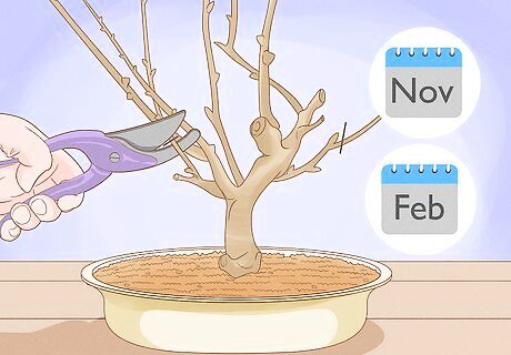 Prune for structure and style from November to February. To ensure you don’t damage the tree too much or stunt its growth, you should only prune for structure and style while the tree is dormant. Typically, this is during the winter months of November to February.